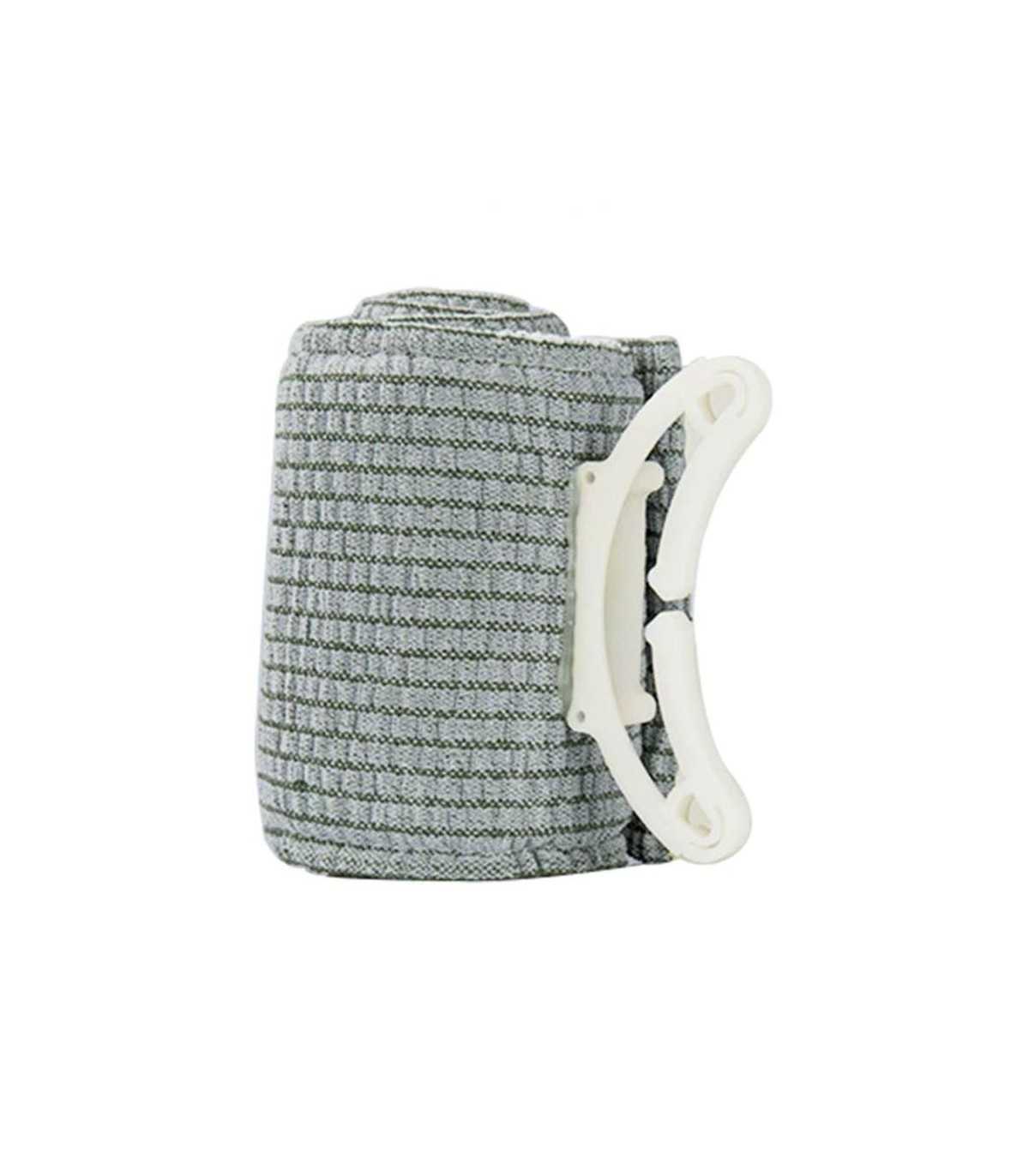Una vez envuelto el vendaje y aplicada la presión, utiliza el cierre de sujeción (gancho o clip) para asegurar el vendaje en su lugar. Asegúrate de que esté bien sujeto para que no se afloje durante el transporte.