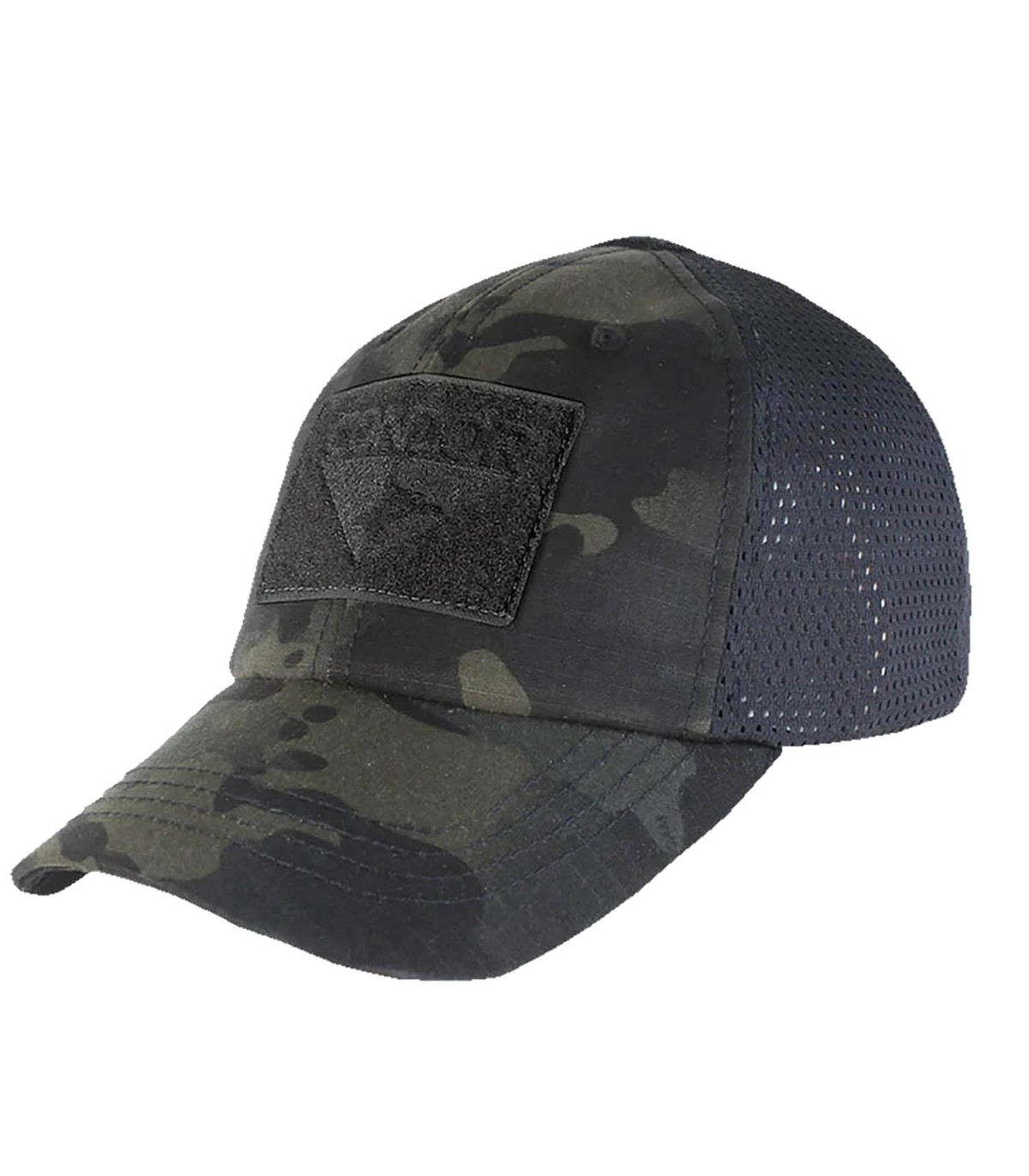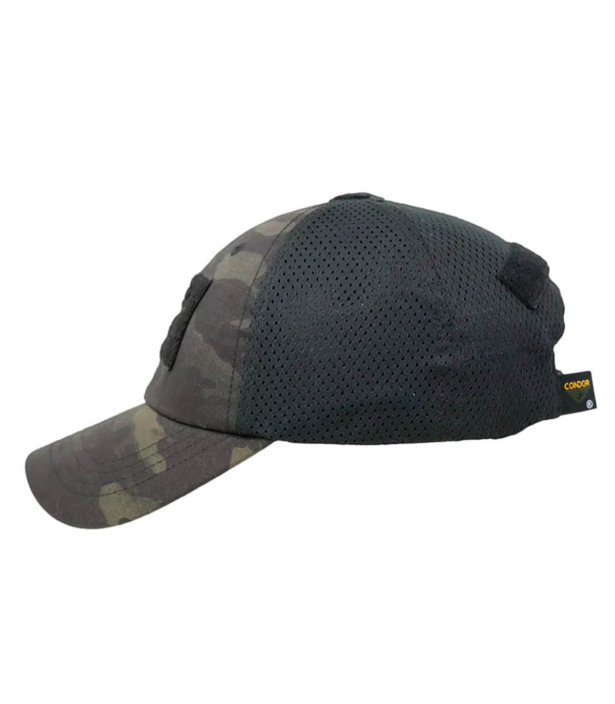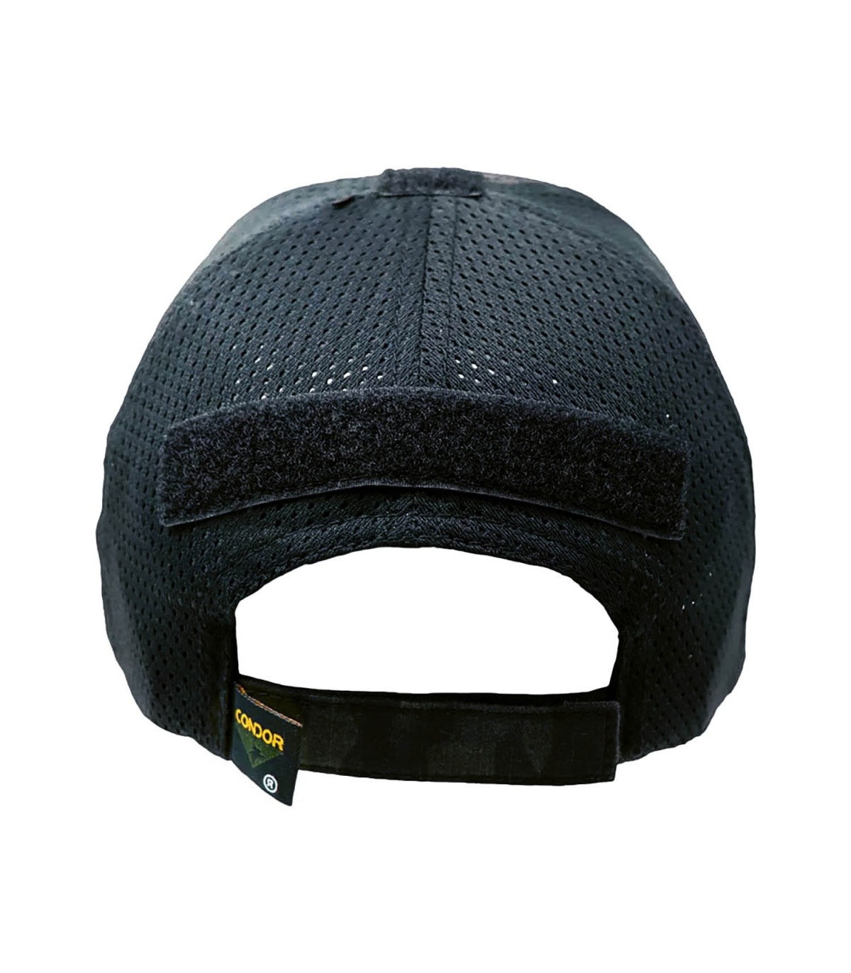 Gorra táctica Cóndor en color MULTIBLACK original, con la parte posterior de panel de malla poliéster , que absorbe la humedad y es de alta transpirabilidad, con correa regulable y ajustable lleva sistema velcro. Lleva 3 paneles velcro para colocar parches personalizados a su gusto, estilo táctico militar, para salir al campo, deportes al aire libre, y amantes de este estilo.
